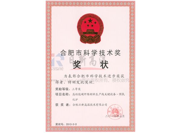 日新高溫“碳纖維碳化生產(chǎn)線”產(chǎn)品被列入安徽省2019年首臺(套)重大技術(shù)裝備。獲得多項安徽省新產(chǎn)品。